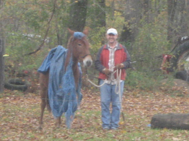 Have done tons of ground work - mules are so smart and catch on so fast that it is almost scary. So, anyway, he is my big buddy - comes when he is called and follows me around everywhere. We are stuck to each other like glue.